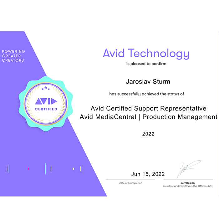 Zajišťujeme profesionální servis a support televizním stanicím a video postprodukčním studiím v Česku a na Slovensku. Pravidelně absolvujeme školení a certifikační testy na Avid Media Composer, Avid NEXIS a Avid MediaCentral | Production, abychom vám vždy pomohli a poskytli technickou podporu.